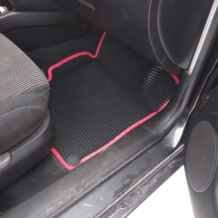 - EVA коврики Фольксваген оснащены антискользящим покрытием. Пористый материал легкий по весу, удерживает мусор и воду.